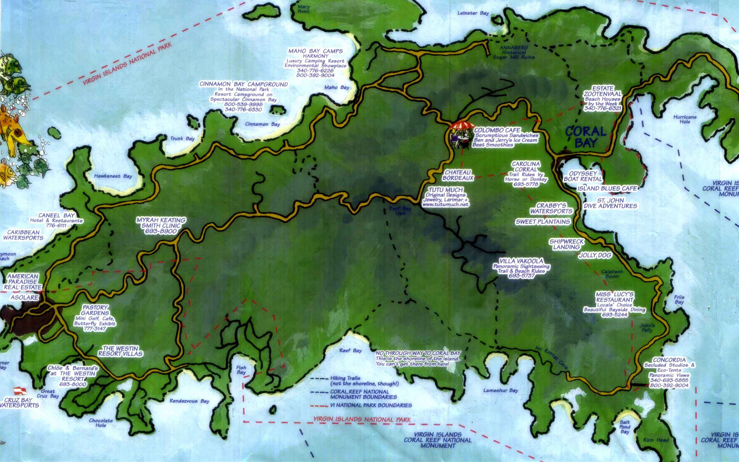 entfernte Nachbarinsel St. John über, wo Zweidrittel der gebirgigen Insel nun dem US